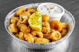 Juicy jalapeno poppers breaded and filled with cheese and fried to golden perfection.